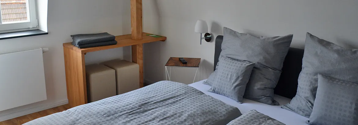 Unsere drei Doppelzimmer verfügen über ein eigenes Badezimmer mit WC/Dusche und einem Fön. Die Zimmer sind mit Sat-TV, Radio und WLAN ausgestattet.